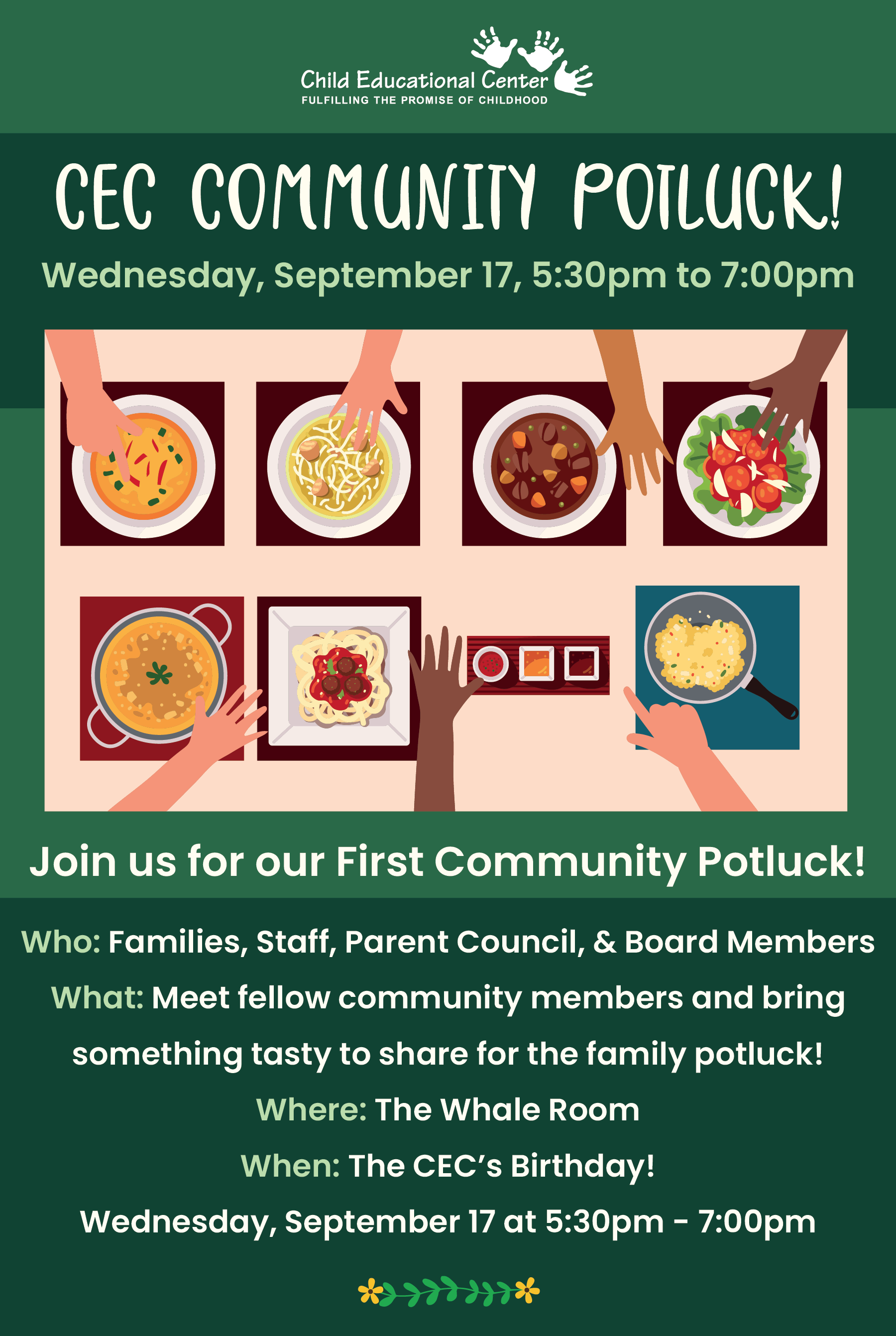 Community Potluck Wednesday, September 17, 2025 5:30 PM 7:00 PM Child Educational Center 140 Foothill Blvd, La Cañada, CA 91011 La Canada Flintridge United States (map) Google Calendar ICS